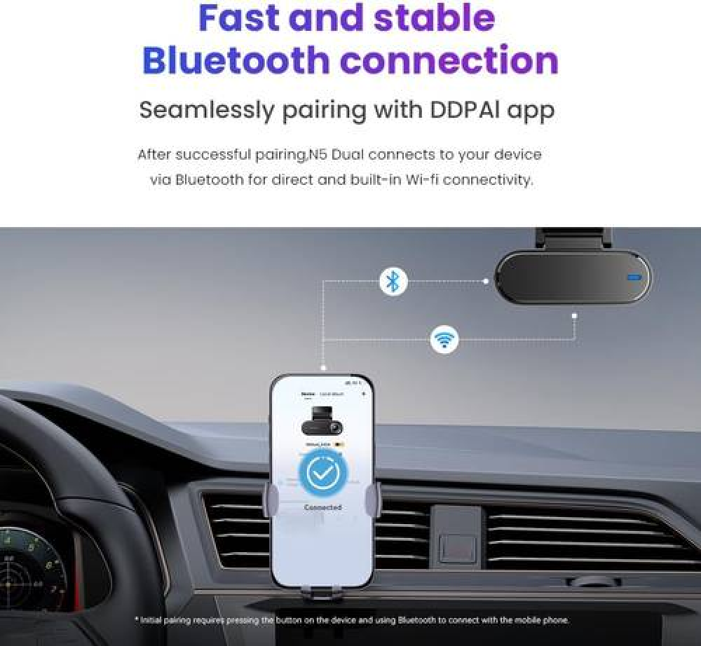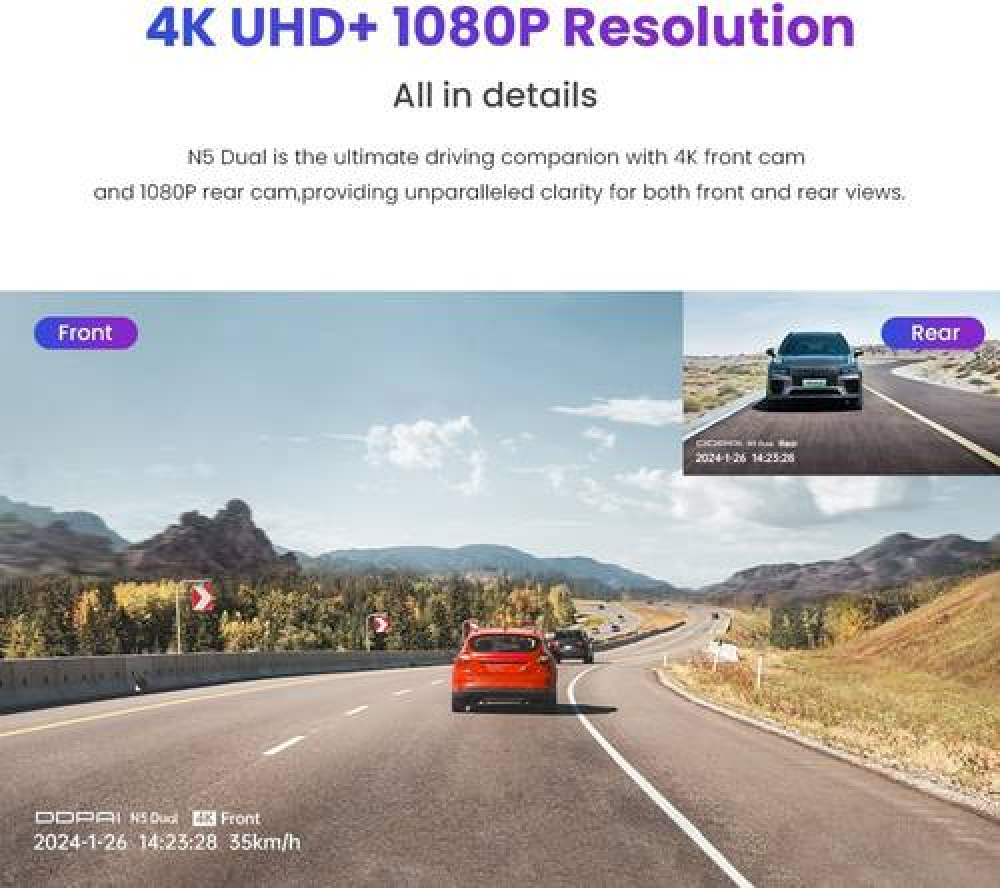 أمّن رحلتك مع داش كام N5 Dual التي تمنحك دقة تصوير عالية وتقنيات حديثة للرؤية الليلية، مع مراقبة ذكية للسيارة على مدار الساعة.