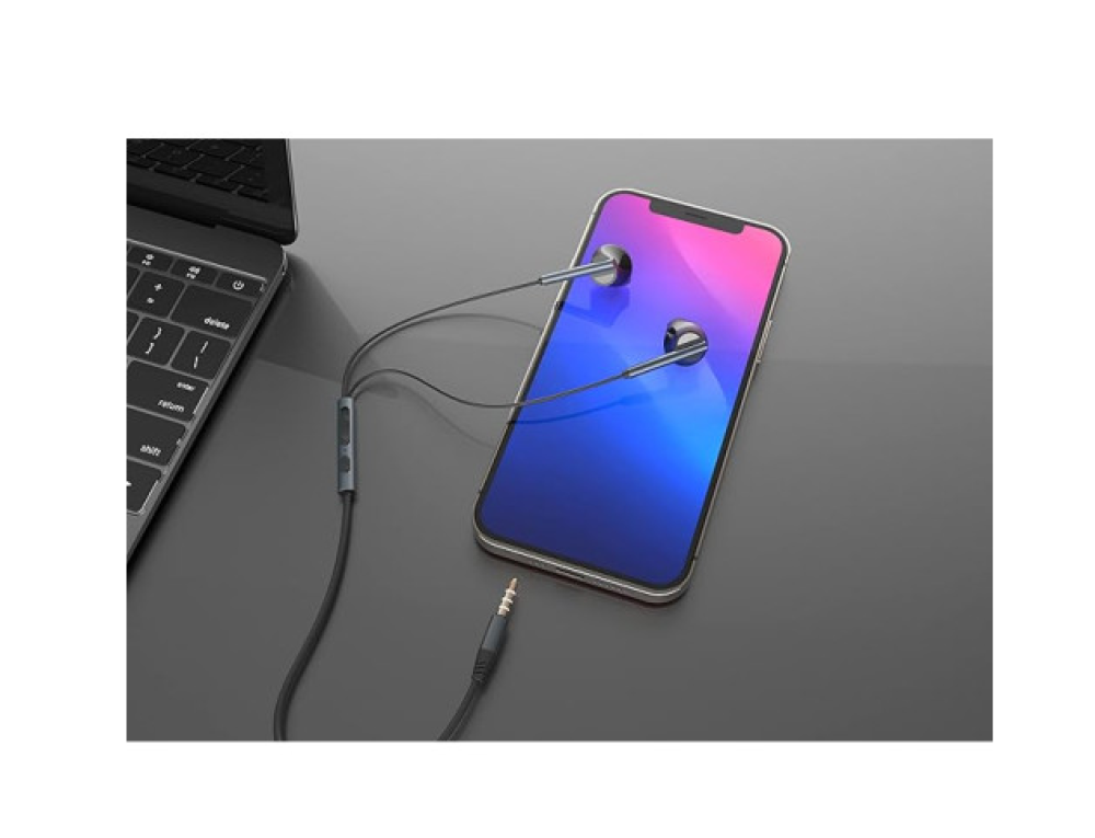 تأتي السماعة بهيكل معدني أنيق وسلك قوي لتحمل الاستخدام اليومي، إلى جانب أزرار تحكم مدمجة لرفع وخفض الصوت بكل سهولة.