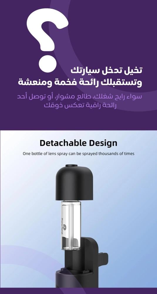 - تشغيل ذكي تلقائي عند استشعار الحركة داخل السيارة لتوفير الطاقة والعطر.